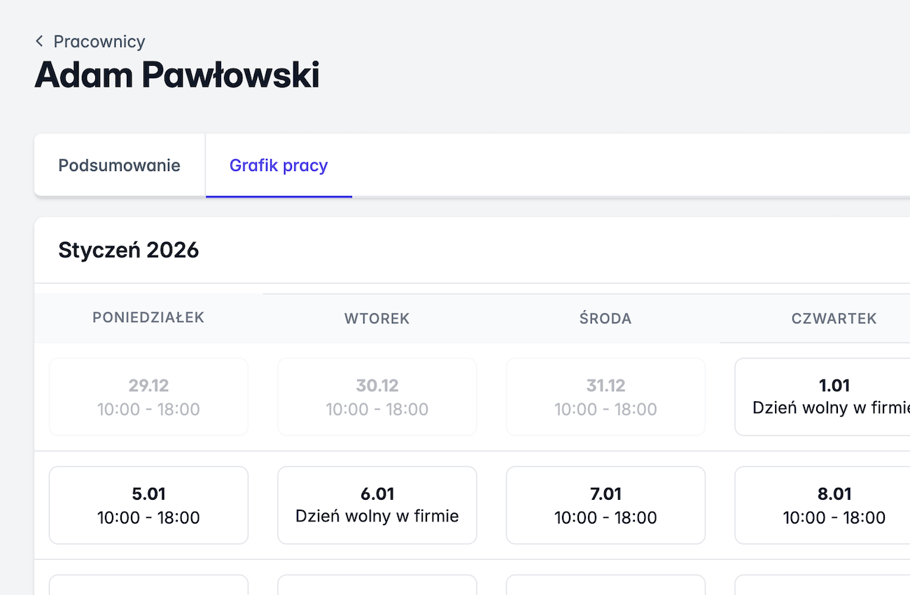 Indywidualne grafiki techników, każdy technik może mieć swój własny harmonogram pracy, dostosowany do jego dostępności i obowiązków. Możesz łatwo sprawdzić kto pracuje w danym dniu i odpowiednio zaplanować zadania. To szczególnie przydatne w większych pracowniach z wieloma pracownikami pracującymi na różne zmiany.